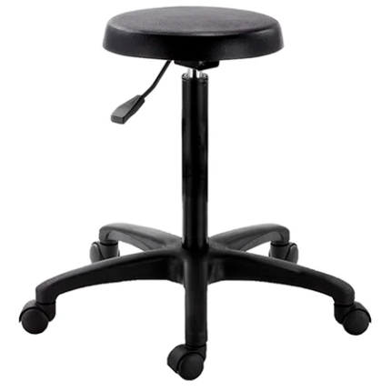 Asiento fabricado en plástico, patas de madera y descansa pies