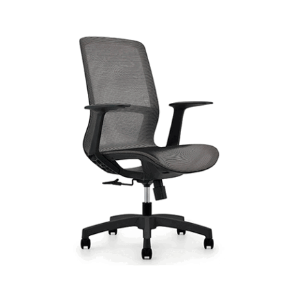 Tapizado en malla con soporte lumbar ergonómico fijo.